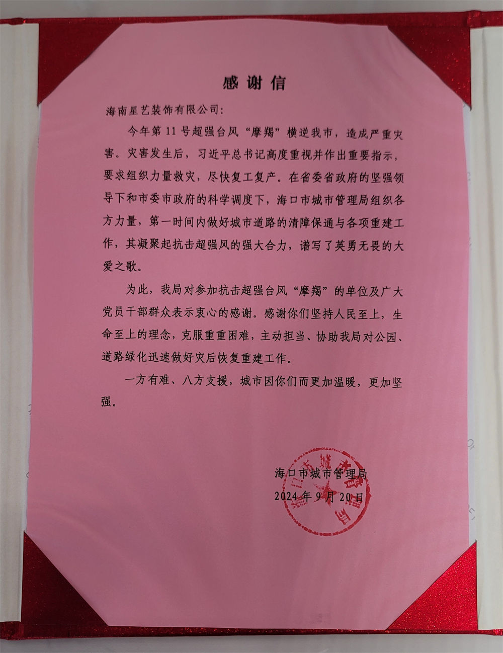 海南星藝裝飾有限公司榮獲“愛心企業(yè)”榮譽(yù)